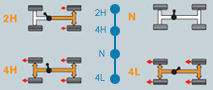 quick, easy straight-line transfer from 2WD to 4WD mode even when the