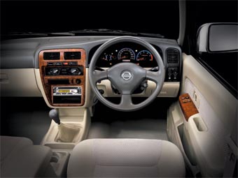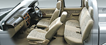 An interior ambience characterized by a bright, open sensation extremely suitable for a personal Sport Utility Truck (SUT) has been created through skillful use of the colour coordination and seatback fabric design, among other measures. The sporty image of the instrument panels adds to this attractive ambience.