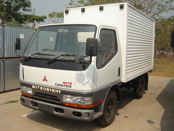 MITSUBISHI FUSO CANTER , a small truck with either 4 or 6 wheels, suitable for a small business. Total load capacity is 4.3-8.4 tons.