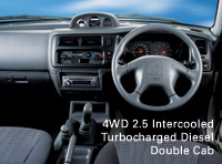 A choice of three diesel engines comprising the 2.5-liter engine with or without an intercooled turbocharger and the 2.8-liter intercooled, turbocharged engine. The 2.8-liter model comes equipped with 4-speed automatic transmission, while all models blend impressive torque with high power and economic performance.